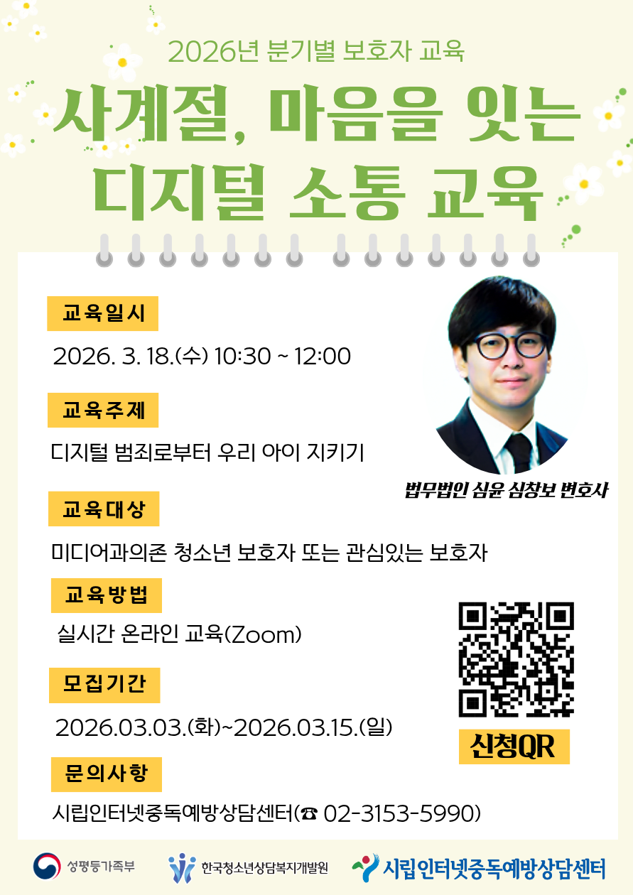 [구글링크로 신청] 2026년 분기별 1차 부모교육 안내